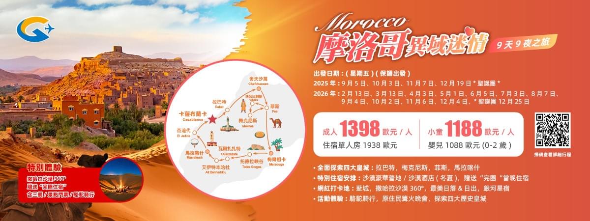 1. G天下系列:2人成團,保證出發!。不設拼房服務!這團亦不設團前或團後住宿服務。
