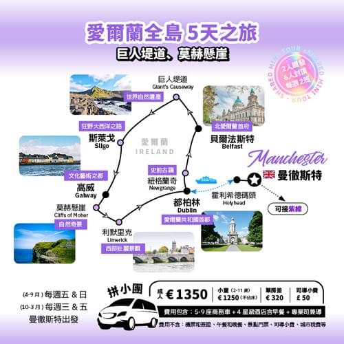 愛爾蘭全島 綠意奇觀5天之旅